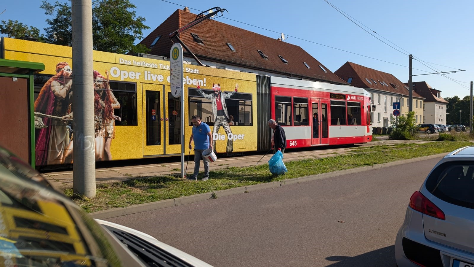 In Kötzschen wurden sogar freiwillig Überstunden gemacht, weil doch einiges an Müll und Dreck zusammenkam, was sonst im ersten Moment gar nicht auffällt. Hochmotiviert waren die Kötzschener schon eine Stunde eher da und haben im Randbereich von Kötzschen die Haltestelle der Straßenbahn in Merseburg-Süd grundhaft gesäubert. Bereits in der ersten halben Stunde füllten sich dabei schnell drei Müllsäcke. Weiter ging es dann aufgeteilt durch alle Straßen Kötzschens. Die Ladefläche des Müllautos war am Ende sehr gut mit vollen Müllsäcken gefüllt.