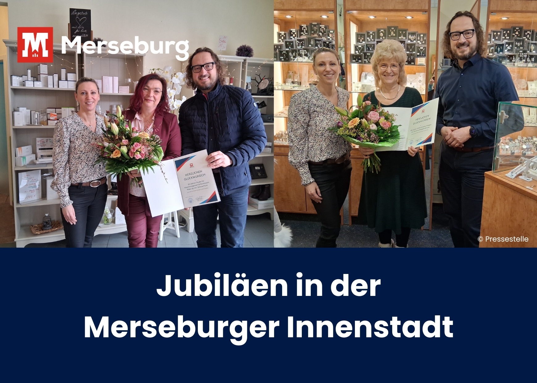 Zu den Jubiläen dieser beiden Gewerbetreibenden gratuliert die Stadt recht herzlich. Vielen Dank, dass Sie damals den Schritt ins Ungewisse gewagt haben und damit bis heute für uns Merseburger und unsere Gäste da sind.