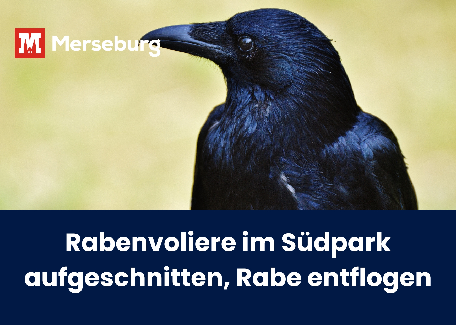 Im Südpark wurde am Wochenende die Voliere der Kolkraben mutwillig aufgeschnitten. Einer der beiden Raben ist dabei entflogen. Das Tier ist in freier Natur nicht überlebensfähig, was ein missglückter Auswilderungsversuch zeigte, nach welchem der Rabe damals in den Merseburger Südpark kam. Er kennt keine Revierkämpfe, findet nicht selbständig Futter und wird von Wildvögeln vertrieben.