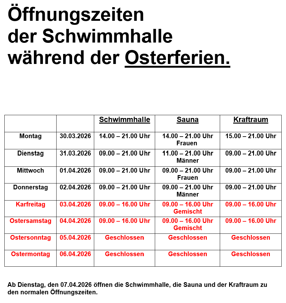 - Vereinsschwimmen (Rettungsschwimmen, Reha-Vereine, Schwimmvereine...)